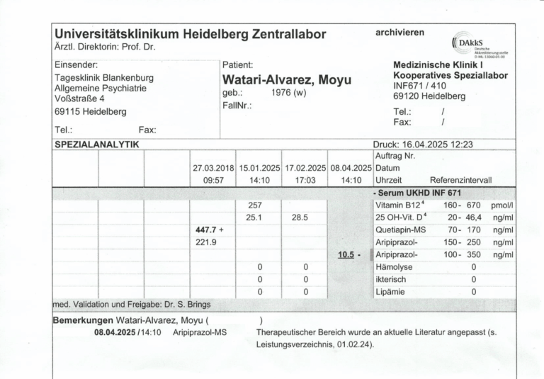 Plasmaspiegelmessung meiner Minimaldosis von 1 mg/Tag Aripiprazol